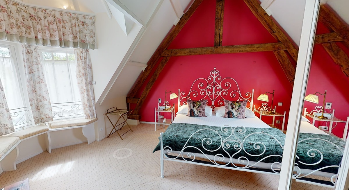 Situés dans les jardins du château et à côté des remparts, la chambre "Chèvrefeuille" de catégorie Luxe est grande et lumineuse. Lieu idéal pour passer un moment de détente à Montreuil sur Mer. Dans les cottages et en duplex, vous disposerez d'un petit salon au rez de chaussée et d'une salle de bain avec baignoire et douche. A l'étage une magnifique chambre au thème champêtre/romantique et un wc. N'hésitez pas à nous contacter pour tout autre demande, nous possèdons 18 chambres