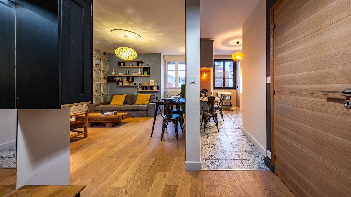 L'appartement d'une surface de 35m2, se situe sous les toits d'une maison du XVIème siècle classée Monument Historique. Il est idéalement situé en plein coeur du centre historique de Dijon, dans le quartier des Antiquaires, à deux pas du Palais de Ducs et du Musée des beaux arts. Il a été entièrement rénové dans un esprit authentique et chaleureux avec tout le confort moderne.