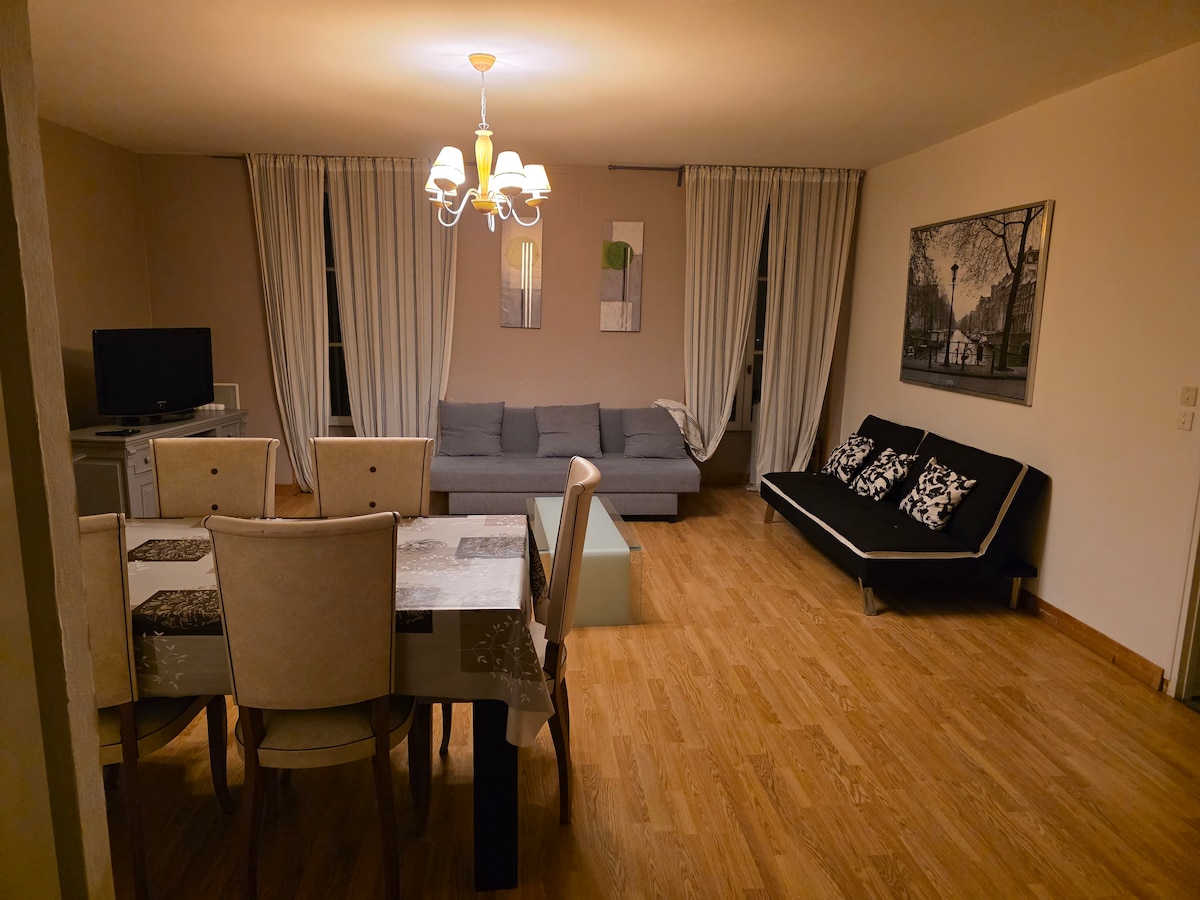 Venez vivre un séjour de confort et de détente, au coeur de l'axe Beaune-Dijon-Dole et de la route des grands crus, de l' Eurovélo6. Le logement entier, totalement indépendant, est idéal pour une personne, un couple ,et jusqu'à 8 voyageurs. La batisse rénovée comprend une cuisine toute équipée,2 lits 160 + 1 lit de 140 ,1 sofa convertible,1 lit de 90, 1 sdb, 1 wc. Petit déjeuner inclus :-) Tous les commerces à proximité immédiate. Parking privé .Garage à vélos. Espace extérieur exceptionnel .