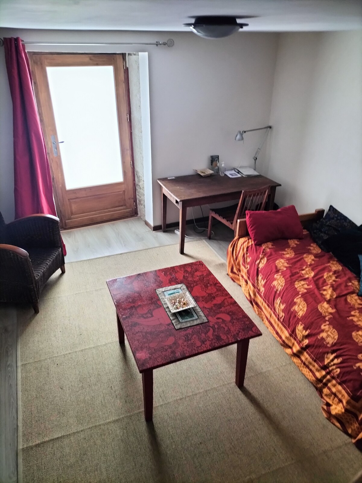 Chambre de 30 m2 très lumineuse avec accès à une terrasse. Salle d’eau avec grande douche, sèche-cheveux, savon invité. Literie haut de gamme 160 cm Mise à disposition cafetière, bouilloire dans la chambre Accès privatif par escalier extérieur Attention : le logement ne possède pas de cuisine. Piscine de 10mx5m chauffée, traitement au sel, serviettes de bain fournies. La piscine est accessible en période estivale de 10h à 19h Les arrivées se font à partir de 16 h. Les départs avant 11 h
