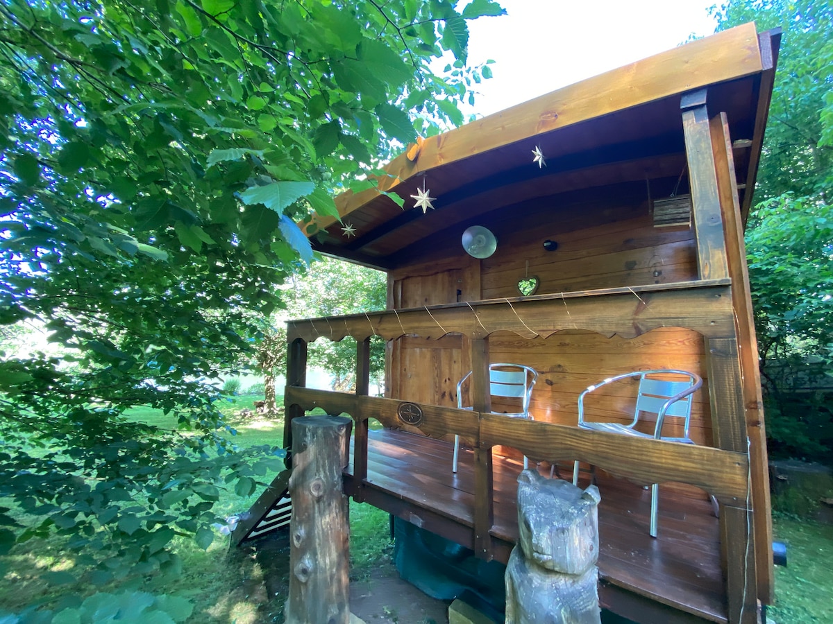 Détendez-vous dans ce lieu unique, insolite et tranquille. Roulotte délicatement décorée au milieu de la campagne avec son SPA privatif. A 10 minutes de Dole, ville touristique et à 30 minutes de la route des vins. Activités diverses à proximité ( équitation, canoë, promenades, paintball, plages de la Loue). Nombreux choix de restauration aux alentours. Petit déjeuner inclus dans le prix. Un verre de l'amitié vous est offert à votre arrivée afin de vous faire découvrir les produits régionaux .