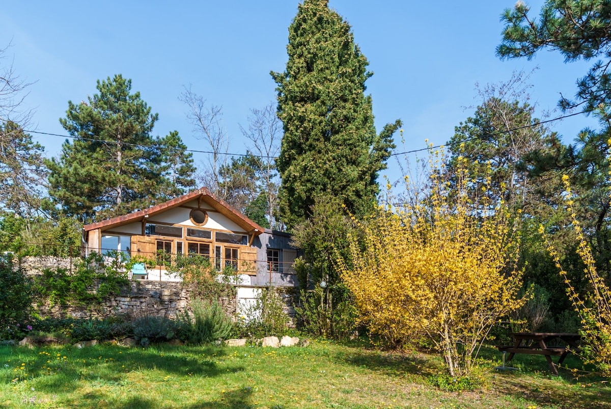 L'interlude est notre petit chalet cosy au look original (grâce à Arnaud, charpentier): un moment suspendu à vivre dans la Vallée de l'Ouche au cœur de la Bourgogne ! Il est l'occasion de vivre une pause, une parenthèse, un doux rêve, l'occasion de recharger les batteries, de respirer ! A deux pas du canal de Bourgogne, avec vue sur la Vallée et la nature avoisinante. Terrasse, spa 3 places, cuisine équipée, 1 chambre double, un espace lit étage pour 2 enfant... Je vous en dit plus après !