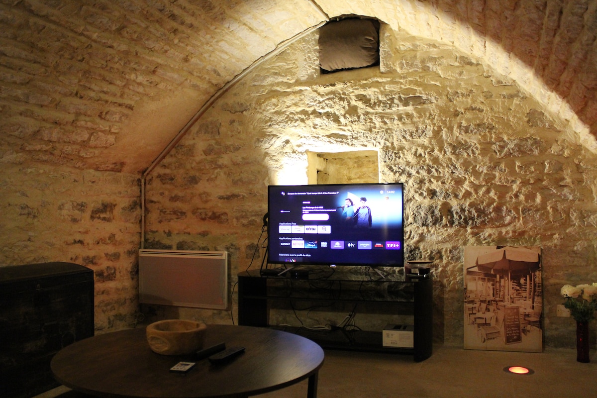 Loft moderne, lumineux et paisible , situé sur la place centrale, à deux pas du château renaissance d'Ancy le Franc. Ce logement est le parfait équilibre entre ancien et moderne . Sa cave voutée, entièrement aménagée et chauffée constitue l'espace de second couchage avec son canapé convertible de 140 x200. Elle est équipée d'un écran 4k et d'un système multimédia connecté. Vous pourrez visionner dans ce cadre unique vos séries et films préférés via les services de streaming.