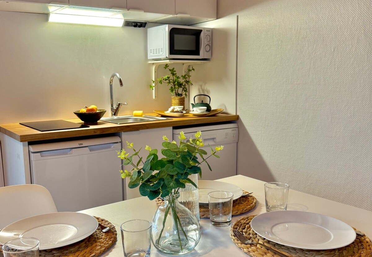 A 5mn de la boulangerie , 150m de la Tille, 3 min d'Arc sur Tille (village toutes commodités,Lac et Autoroute),15 minutes de Dijon, dans lotissement calme avec facilité de stationnement. Chalet avec entrée indépendante (à côté de notre maison) de 17m2 kitchenette, salle d'eau et wc. Wifi,micro ondes.Savon, shampooing, draps, oreillers, vaisselle,sèche cheveux, fer à repasser, cafetière filtre. Entrée autonome à toutes heures, communicationpar message. Plan lotissement joint pour arrivée facile.