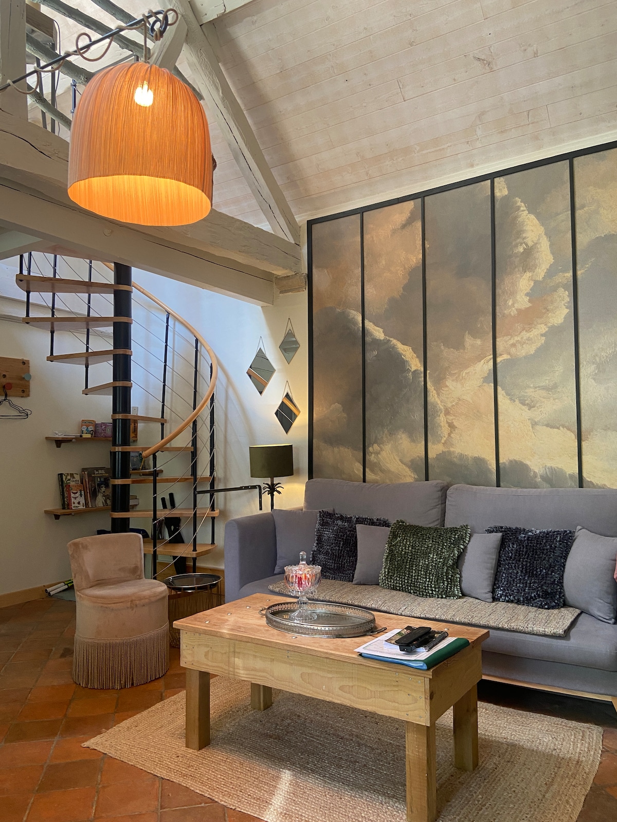 Welcome to our charming apartment, which we’re proud to say has a four-star award from the Departmental Tourist Board. It's in an historic buidling, inside the ramparts in the very heart of Beaune, but in a quiet side-street. It features a salon/dining room, an independent, fully-equipped kitchen, a bedroom and separate bathroom. Bright and sunny with high-beamed ceilings, a stone staircase and marble corridor, it also features a lovely glass 'verrière' overlooking an interior courtyard.