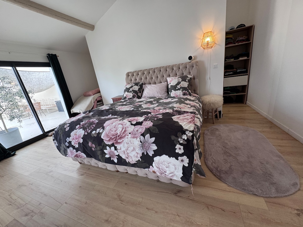 Immerse yourself in the warmth & allure of our FIRE room - an intimate retreat designed for couples seeking comfort, calm, and connection. Inspired by Feng Shui’s Fire element, this elegant double room offers a cozy atmosphere, refined details, and effortless comfort. Near Circuit Prenois and Dijon city center - perfect for both relaxation & easy access. Room features • Premium queen-size bed (160×200) • Comfortable sitting area • Dedicated work desk • High-speed fiber Wi-Fi • Air conditioning