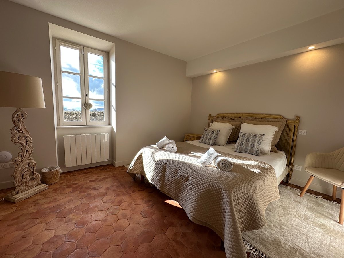 Stunning views across the Auxois countryside from both house and garden. Very comfortable double bedroom with private entrance & ensuite bathroom in a sleepy hamlet. The heated garden kitchen can be enjoyed year round providing simple cooking facilities, dining table and armchairs. There is an area for alfresco meals, a small herb garden & deck chairs to enjoy the spectacular views; off road parking. The owners, Bill and Jenny Higgs live next door - very discreet but always on hand to help.