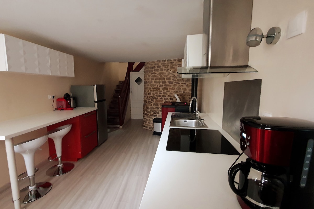 Détendez-vous dans ce logement calme au cœur du vieux Fontaine les Dijon. Petite Maison indépendante entièrement rénovée de 40m2 avec beaucoup de charme. Tout confort avec literie neuve, cuisine équipée, cafetière Senséo, four, micro ondes. Commerces à 2min à pieds: boulangerie, boucherie, restaurant. Accès en bus depuis la gare à 11 minutes, 10 minutes du centre ville de Dijon et de la cité de la gastronomie. Accès depuis la rocade en 5 minutes. Parking gratuit à proximité (moins de 100m)