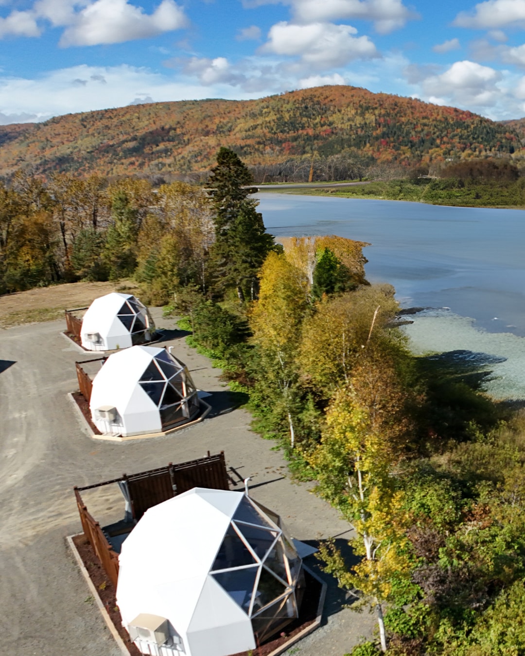 Experience luxury glamping in Flatlands, NB! Our insulated domes at Old Church Cottages offer a serene adult-only (18+) retreat under the starlit sky, surrounded by the Restigouche River and mountains. Enjoy heated floors, AC, a full kitchen, and a modern shower. Unwind in your private hot tub, open year-round, with patio furniture and BBQ in summer. Please note: Fixed check-in at 4 PM NB time Old Church Cottages is Open year-round