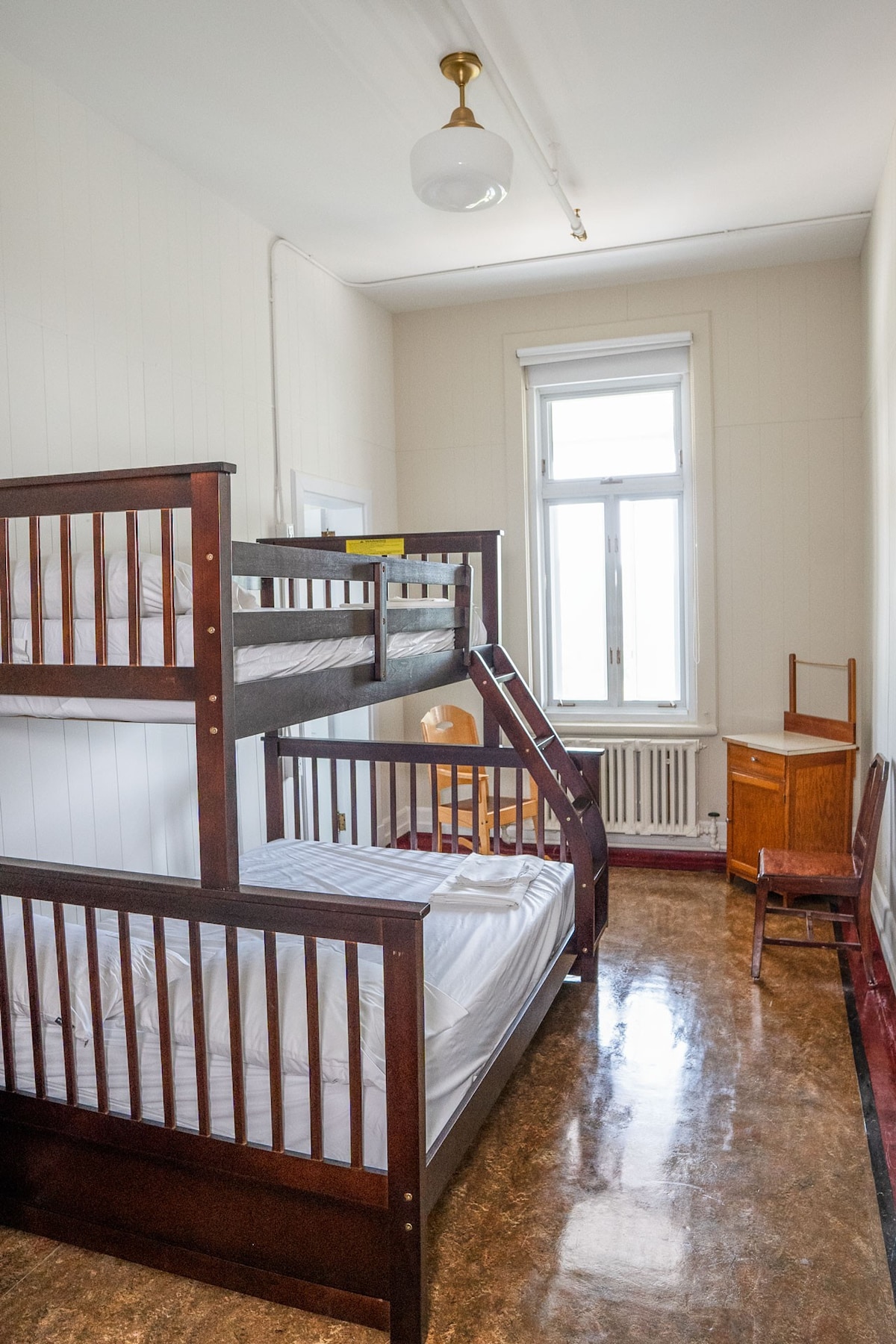 Notre auberge a pris un bon coup de jeune avec des rénovations toutes fraîches. La chute propose un lit double, confortable, l'endroit idéal après une journée d'aventures. L'accès à notre cuisine commun est l'endroit idéal pour discuter avec les autres voyageurs, ce préparer un festin dans notre nouvelle cuisine. Tu as la mer juste devant les yeux en faisant ta cuisine. Pour les amateurs de nature, le parc Forillon est à deux pas de notre auberge!