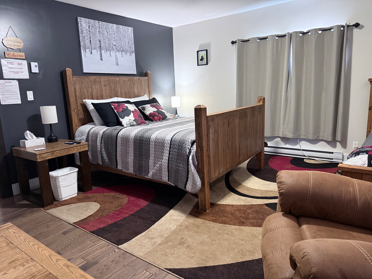 Discover Studio Outback in Deer Lake, NL, with a private entrance and a well-designed space featuring an ensuite bath. The cozy studio includes a comfortable Queen bed and a fully equipped kitchenette with a mini fridge, microwave, coffee maker, kettle, and toaster. Outdoor amenities include a BBQ and a seasonal Fire Pit for enjoying the evening stars. Affordable charm awaits!