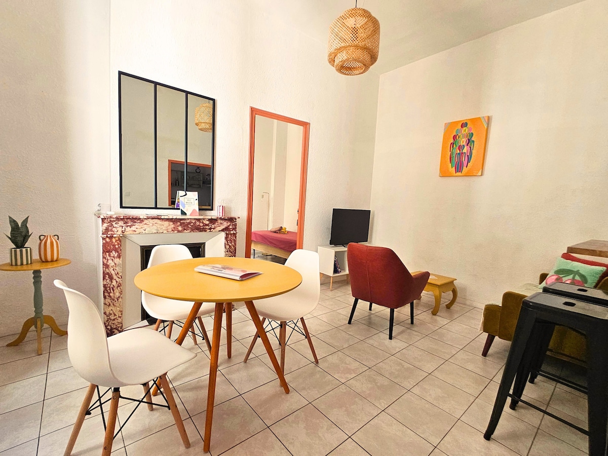 Charm and Comfort at the Heart of Perpignan Elegant and thoughtfully designed studio with TV, Netflix, fast Wi-Fi, quality bedding and a fully equipped kitchen. Ideal for a relaxing break or working remotely in a stylish, central setting. Just 30 seconds from Place de la République – walk to restaurants, bars, shops and cultural sights. A refined and comfortable base to experience Perpignan at its best.