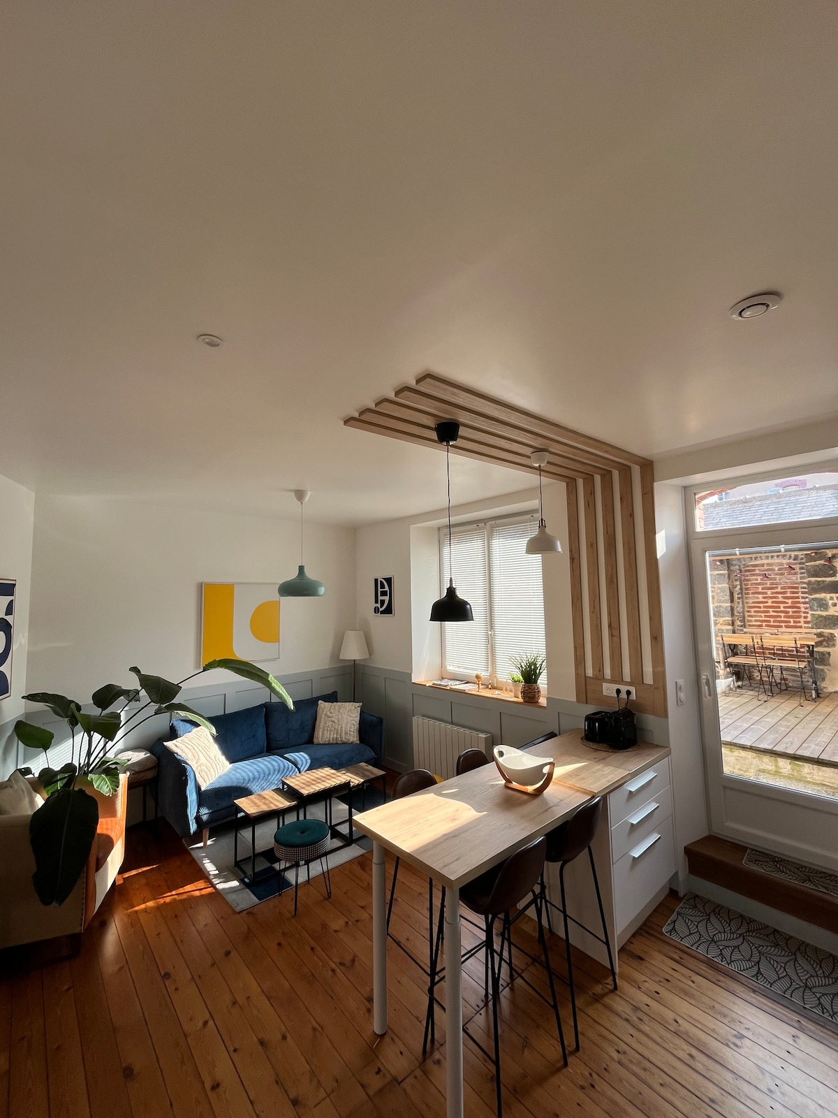 Perfectly placed in the historic heart of Dinan, this beautifully renovated city centre apartment is situated at the top of the famous medieval street, 'The Jerzual'. Dinan's restaurants, shops and historic buildings are just a few steps away. This second floor apartment has one (double) bedroom and a fold-down bed/setee. The stylish kitchen has all new appliances and the apartment is equipped with security doors and smoke and carbon monoxide detectors.