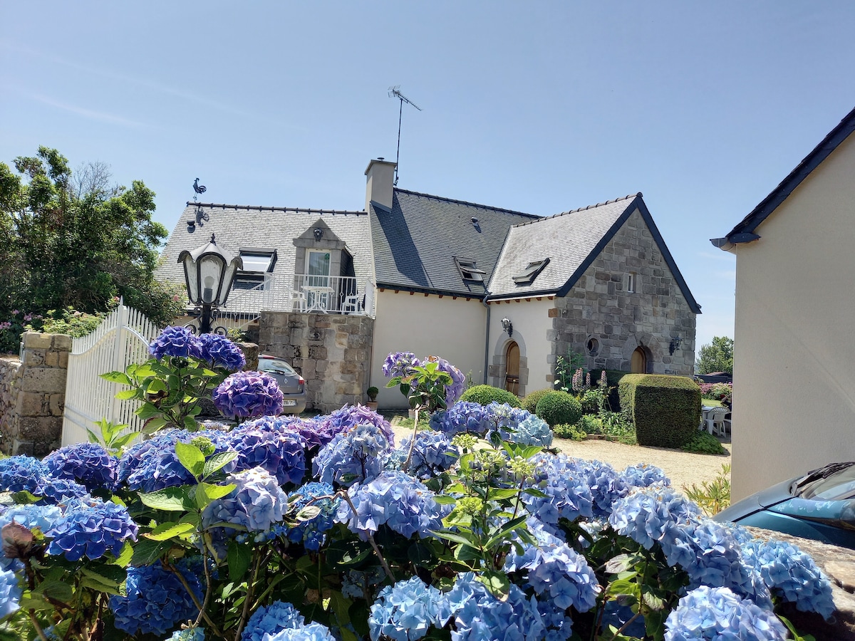 " The sea is in the wood cottage ***" over side fishermen's Penhoat, small village, near the Trieux esturay, it means in Breton language (the end of the wood) where Philippe and Marie will welcome you under the hundred-year-old oaks, just a training for you, before exploring 700 HA of wood and moors of the "Conservatoire du Littoral" You can appreciate the peaceful in this 4000 m2 property' s.