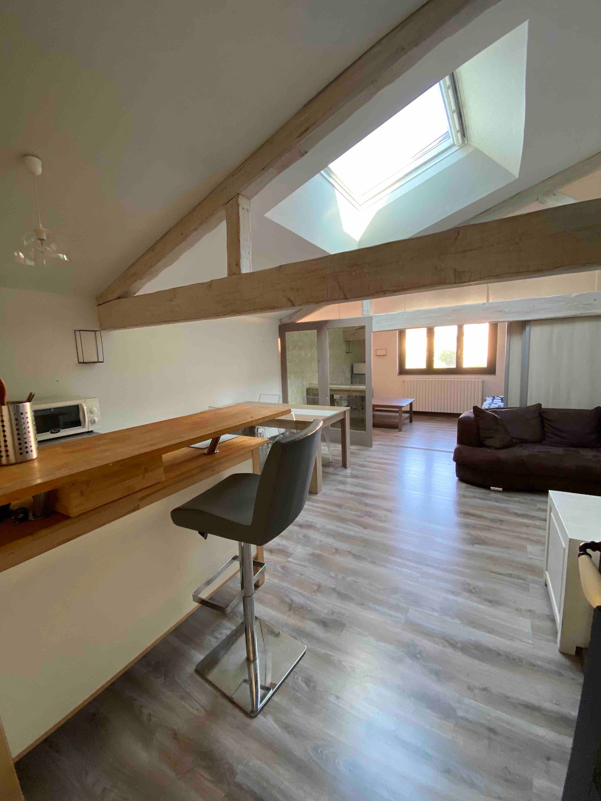 Bonjour je loue deux chambres de 15 m2 avec bureau et commode dans un espace de 70 m2 espace télé avec wifi et canapé salle de bains avec douche italienne wc espace cuisine meublé d une table avec chaises, frigo, gaz, micro onde, four, lave vaisselle,cafetière,grille pain, ustensiles de cuisine tout cet espace est indépendant car séparé de ma partie habitation par une porte intérieure insonorisé dans la limite du raisonnable Escalier un peu raide pour accéder à l appartement
