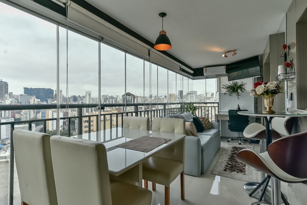 This stylish 50m2 apt. located at Bela Vista, has 24hr doorman. 2 bedrooms (only 1 with AC, and queen bed, the second one is quite small and can be used as an office, fitting a double-sized sofa-bed) and 1 bathroom. With amazing views from every window, it is a great place to work and relax. The private jet tube at the balcony is a fantastic spot to enjoy the city views. Parking - cable/smart tv, fridge with ice maker, oven, wash&dryer, cooktop, microwave, dishwasher and ultra fast internet.