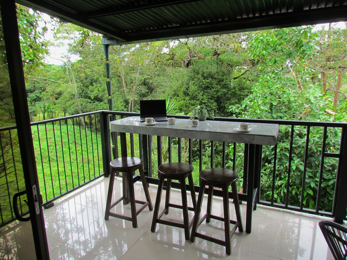 Our Hacienda sits on 40 Acres of land that was once one of the areas original Coffee plantations. Today, it is a private Estate with big jungle trees, about 4km of trails, fruit orchards and beautiful gardens. The house has been fully renovated and is welcoming and comfortable. A large wrap-around terrace looks out toward Volcán Barú and La Amistad Park. Hacienda Viva offers a setting to slow down and reconnect. Our place offers something for everyone..a perfect place to enjoy and make Memories!