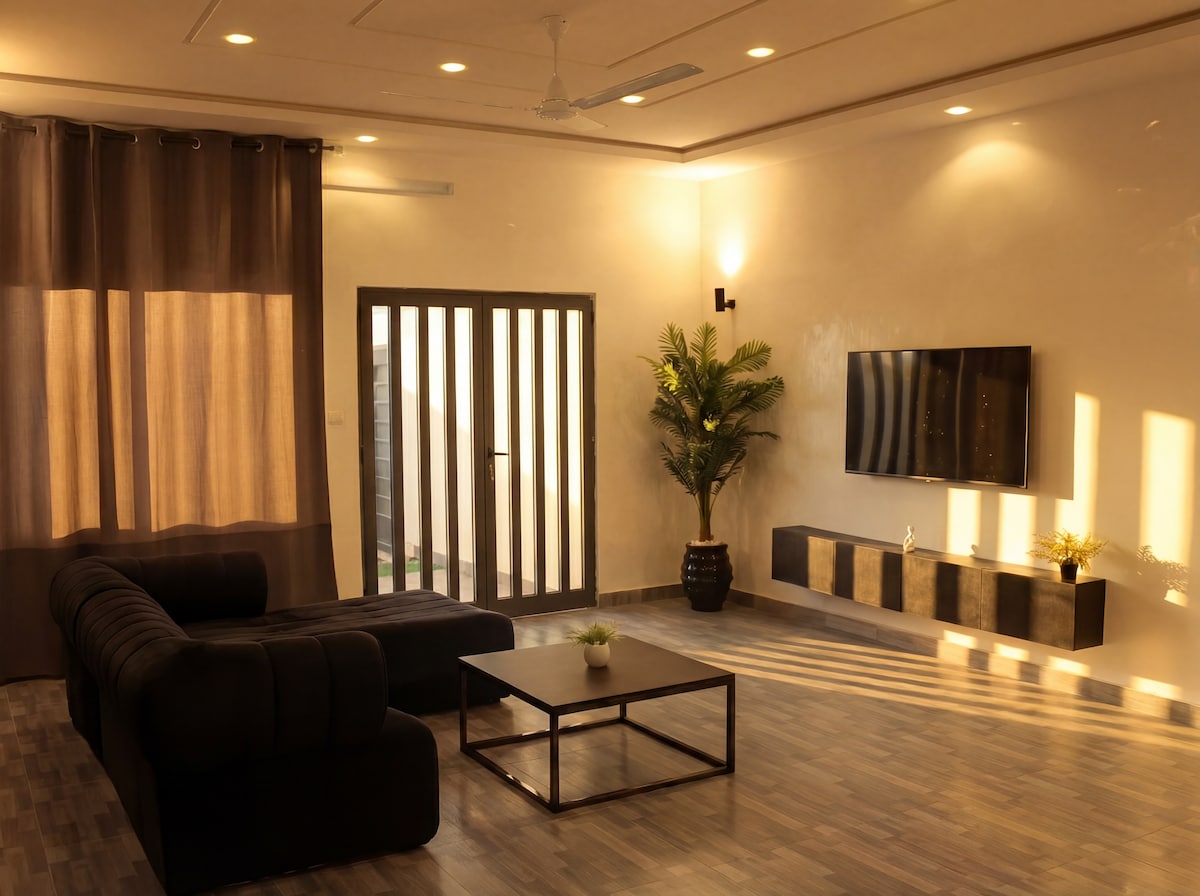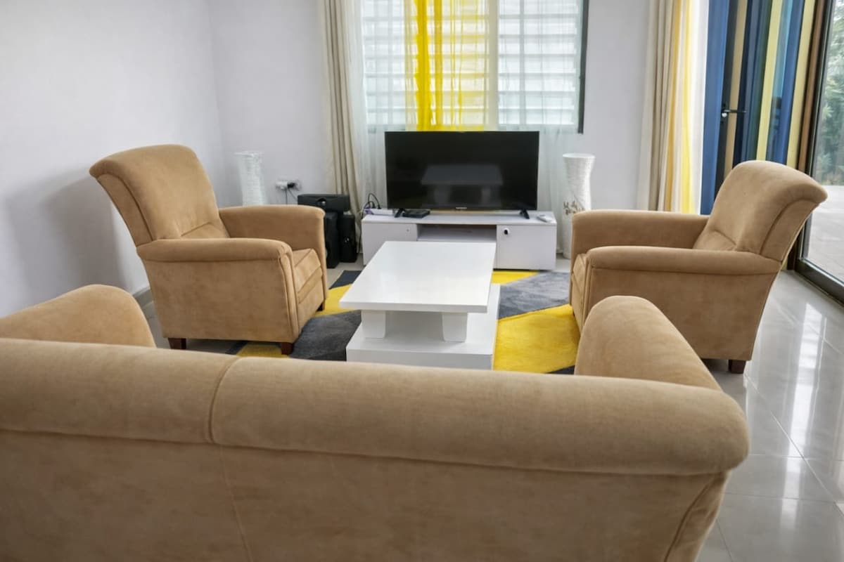 Cet appart élégant et, plain-pied est disponible au cœur de Cotonou prêt du CEG houeyiho, à 8min de la plage et 10 de l’aéroport. -Toutes les pièces sont climatisées -Cuisine avec tous les équipements modernes -Tv smart et système hifi au salon pour vos détentes **Inclu dans le prix: -Wifi haut debit -Groupe électrogène de relais pour la nuit -Agent de sécurité présent 24h/24 -Eau avec tank de rétention en cas de coupure d’eau par la Soneb -Agents de nettoyage 1 fois par semaines sur demande.