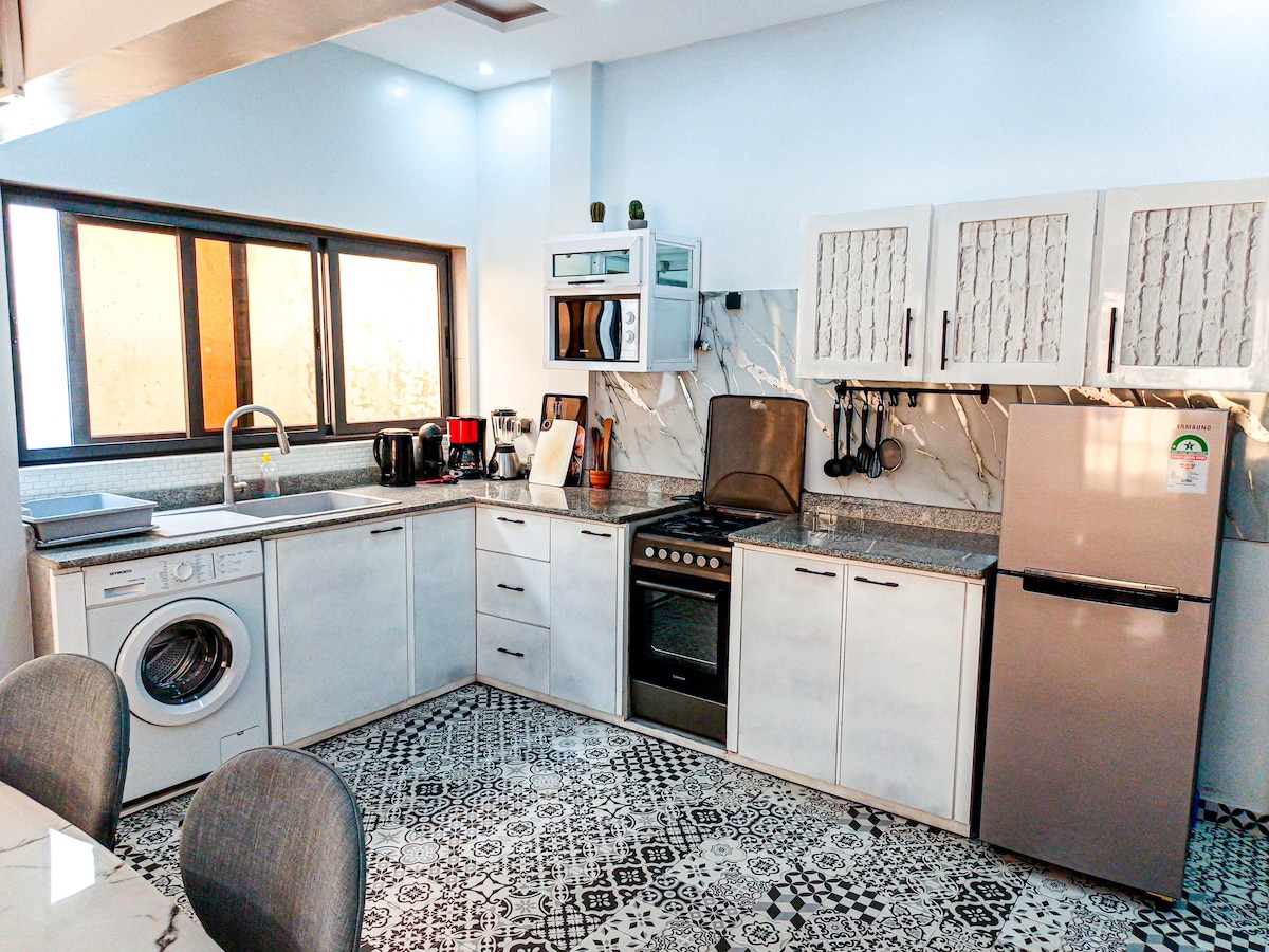 Découvrez notre maison moderne et impeccable, située à 5 minutes de la plage, près du lycée français Pierre Manoel et de l’aéroport. Idéale pour les séjours professionnels, familiaux et entre amis, elle offre trois chambres confortables, une cuisine ouverte avec îlot central, un salon lumineux et une salle à manger. Le quartier animé de Fidjrossè vous offre également de nombreuses commodités, telles que des boutiques, des restaurants, des bars et des supermarchés.