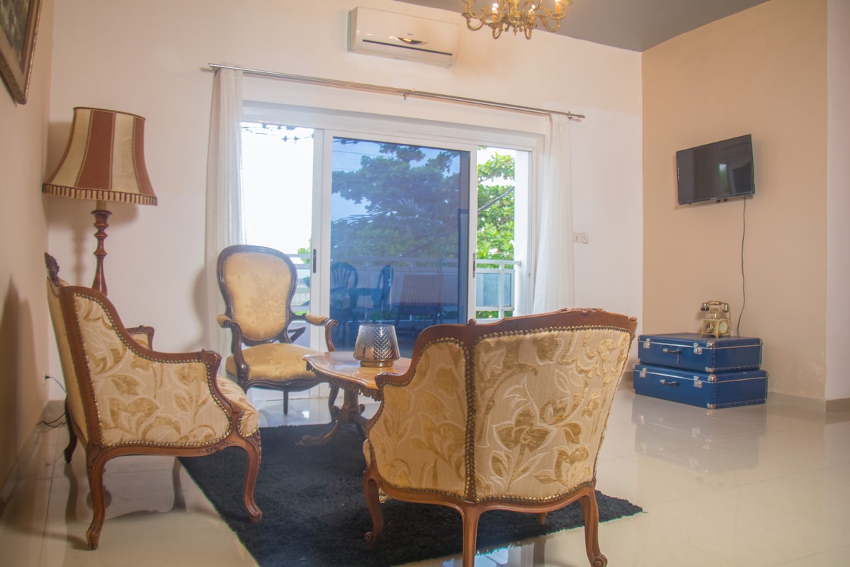 Goûtez à l'élégance de ce logement exceptionnel à quelques mètres de la plage dans le paisible quartier de Fidjrossè Plage. Cette suite offre une chambre très spacieuse, un petit salon, une grande cuisine, une terrasse et un appatam généreux avec une vue en profondeur sur la mer. La brise du soir est un délice. Vous y trouverez quelques appareils de fitness. A proximité, un grand choix de restaurants, une pharmacie. Le centre commercial est à 7 mins et l'aéroport à dix minutes en voiture.
