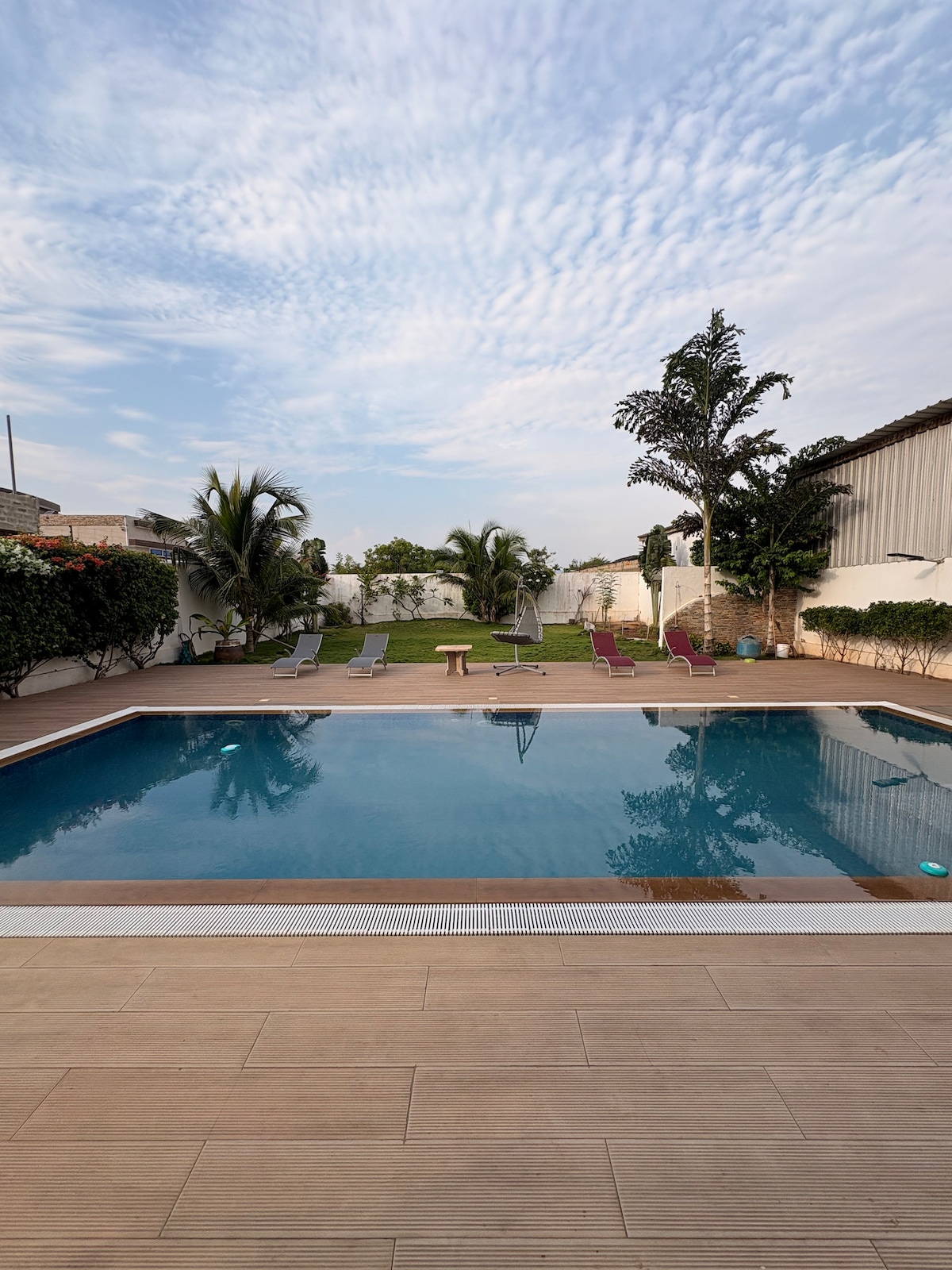 Very nice house near Fidjrosse beach with large rooms and hallways, large and well-kept garden, outdoor pool, well-equipped kitchen, comfortable beds, fast WiFi, Canal+, hot water, washing machine and air conditioning. The rooms can be cleaned every day upon request at no extra charge. The house is good for couples, families with children and large groups. The house is guarded. Electricity via prepaid card system at the tenant's expense, approx. €10 per day. Welcome ❤️