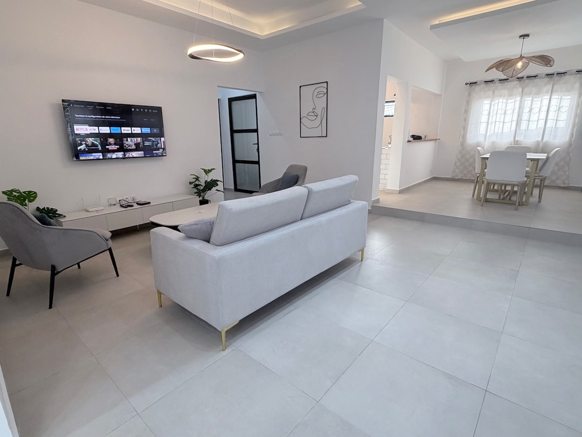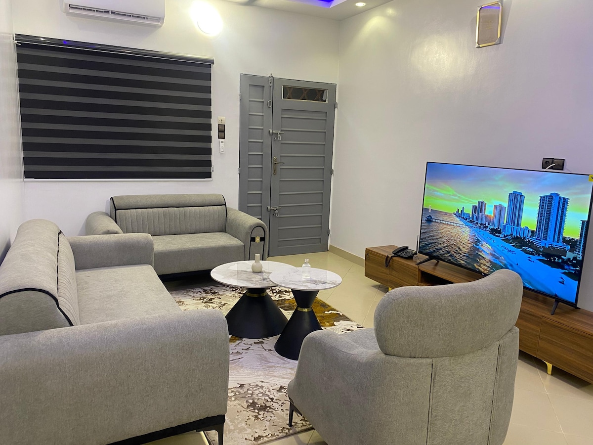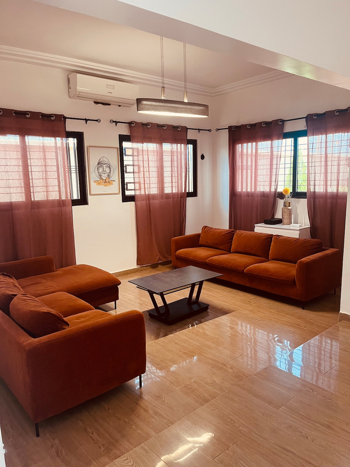 Welcome to this modern and spacious studio apartment in Cotonou— your perfect home away from home in a quiet, safe neighborhood. Enjoy a fully equipped kitchen, a cozy living area with comfy sofas and a smart TV, a dining table, and a private bedroom and bathroom. The space is bright, clean, and thoughtfully designed for relaxation or work. This beautiful appartment is pnly a short drive from the airport, it's close to upscale restaurants in Haie vive and also near supermarkets and shops