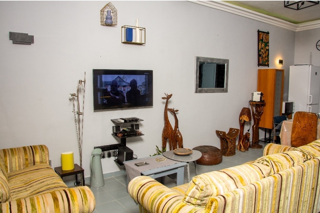 Welcome to this modern and spacious studio apartment in Cotonou— your perfect home away from home in a quiet, safe neighborhood. Enjoy a fully equipped kitchen, a cozy living area with comfy sofas and a smart TV, a dining table, and a private bedroom and bathroom. The space is bright, clean, and thoughtfully designed for relaxation or work. This beautiful appartment is pnly a short drive from the airport, it's close to upscale restaurants in Haie vive and also near supermarkets and shops
