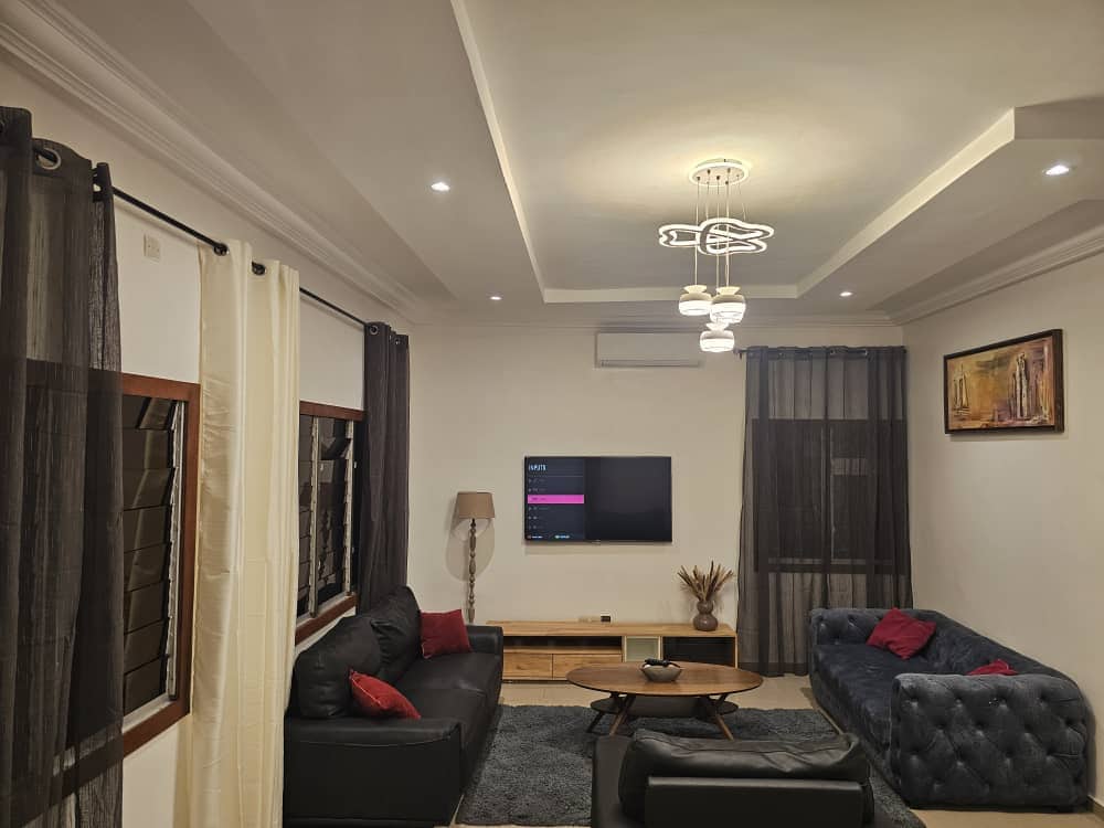 Welcome to this modern and spacious studio apartment in Cotonou— your perfect home away from home in a quiet, safe neighborhood. Enjoy a fully equipped kitchen, a cozy living area with comfy sofas and a smart TV, a dining table, and a private bedroom and bathroom. The space is bright, clean, and thoughtfully designed for relaxation or work. This beautiful appartment is pnly a short drive from the airport, it's close to upscale restaurants in Haie vive and also near supermarkets and shops