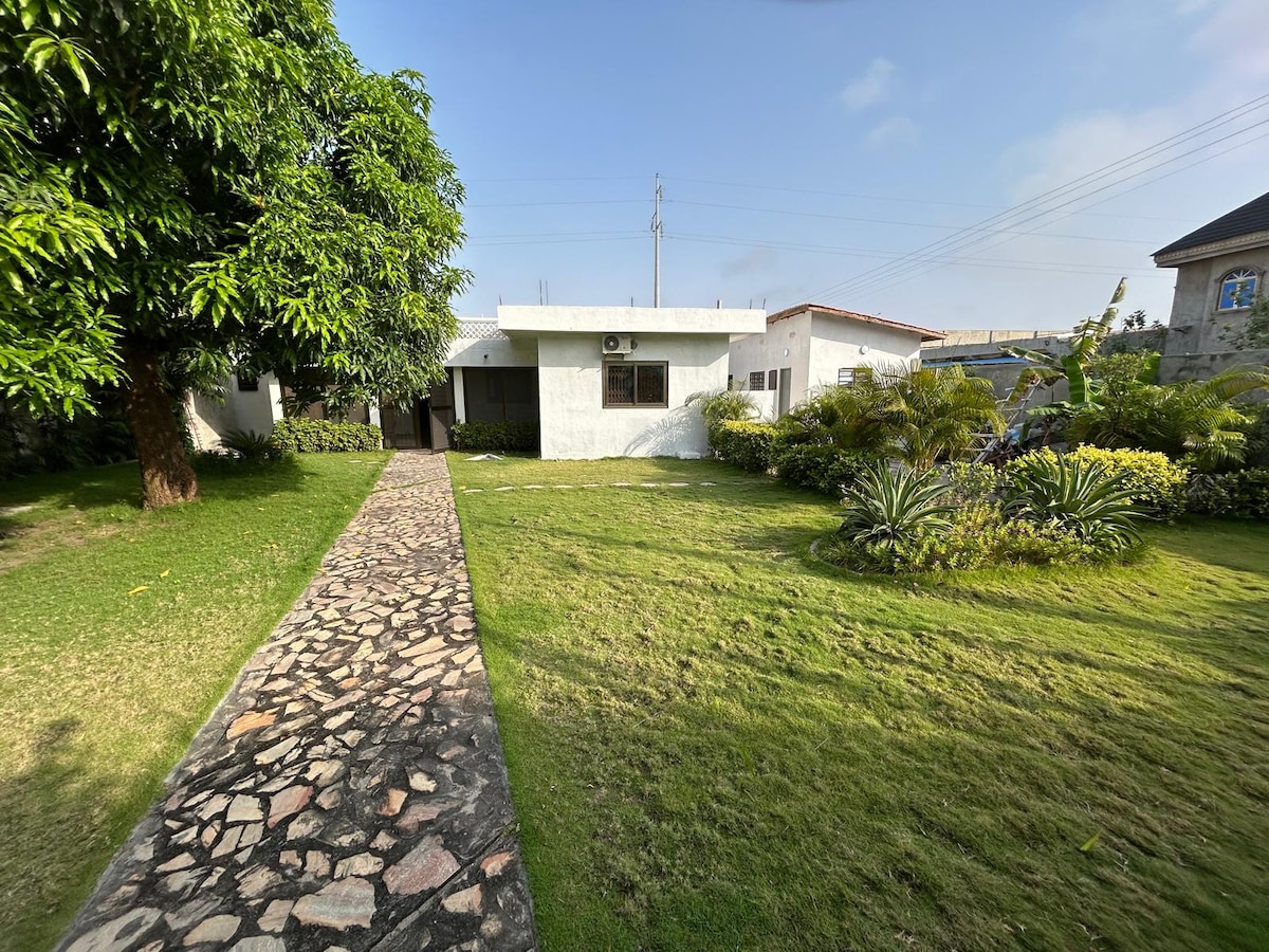 Maison de plein pied 130 M², idéale pour accueillir des familles. Toutes les pièces sont climatisées et, équipées de brasseurs d'air. la maison est entièrement sécurisée C'est une Maison très ressente qui se situe à Cotonou, et qui est localisée dans un secteur résidentiel calme, et juste à 3 min de la plage. -8 min en voiture du Marché Dantokpa. -8 min en voiture de la zone d'activité de Ganhito -12 min en voiture de la place de l'étoile Rouge. -15 min en voiture de de l’aéroport