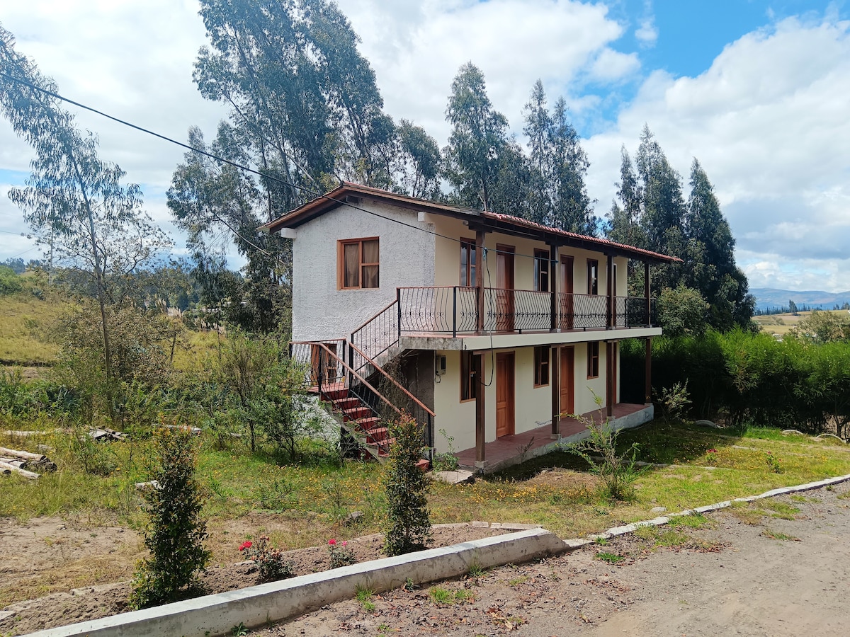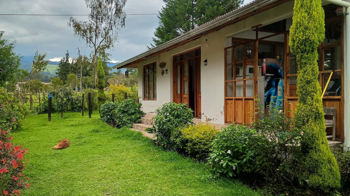 Beautiful countryside house in the heart of the Andes, perfect for couples or small families. Enjoy stunning views of Cotopaxi and Illinizas from a home designed to connect with nature. Large outdoor area with hammocks and grills. For an additional cost, we offer breakfast, llama activities, horseback riding, and tourist transport. Experience authentic Andean nature in Ecuador.