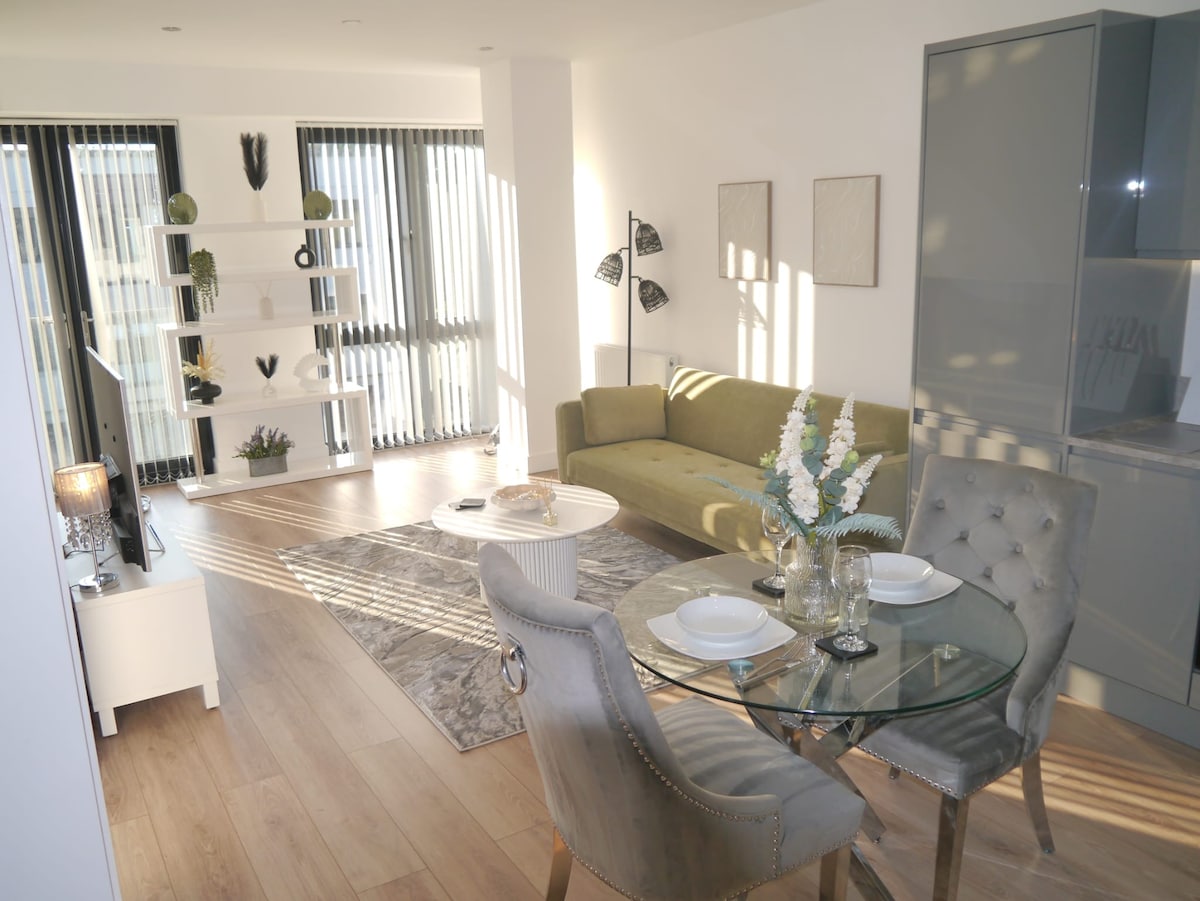 Modern 1 Bed Apt, Sleeps 3, Gym, 2 mins Train, NEC