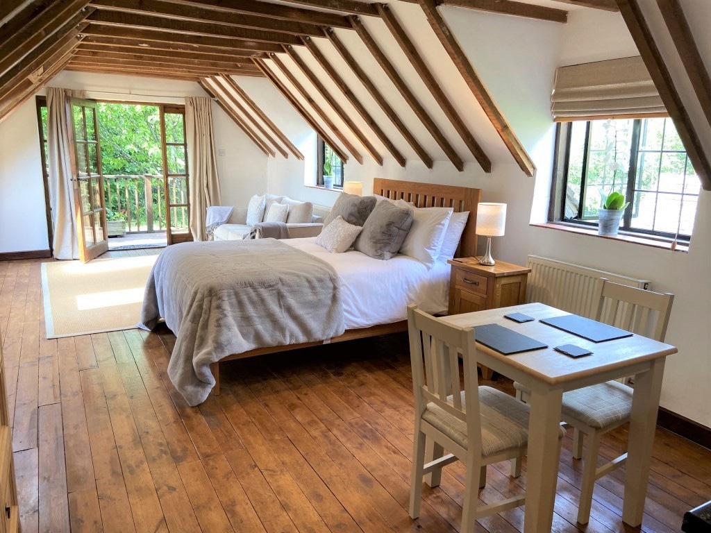 A beautiful, secluded apartment, the Stable Loft has been lovingly restored into the perfect countryside retreat. The Loft is tucked away by a stream on the edge of a pretty village boasting beautiful scenery, lovely walks and an award-winning pub. Nestled at the foot of the Ridgeway, Letcombe Regis is the perfect location for walking or cycling holidays, as well as a wonderful spot for those who want some peace, quiet and culture, with the historic city of Oxford less than 20 miles away.