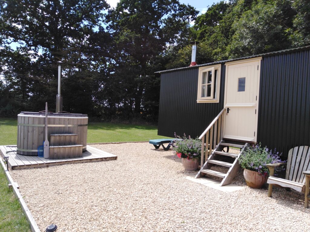 A unique and spacious shepherd's hut on a peaceful and private farm in Eckington in the Cotswolds. The wood-fired Hikki Sweden hot tub is available for guests to use 24/7, with stunning countryside views. We provide several logs and kindling on arrival. Perfect for a weekend getaway for 2 with a comfy double bed, working kitchen, and shower room. The view from the hot tub is of Bredon Hill, and most mornings, you will see the herd of deer pass through the field.