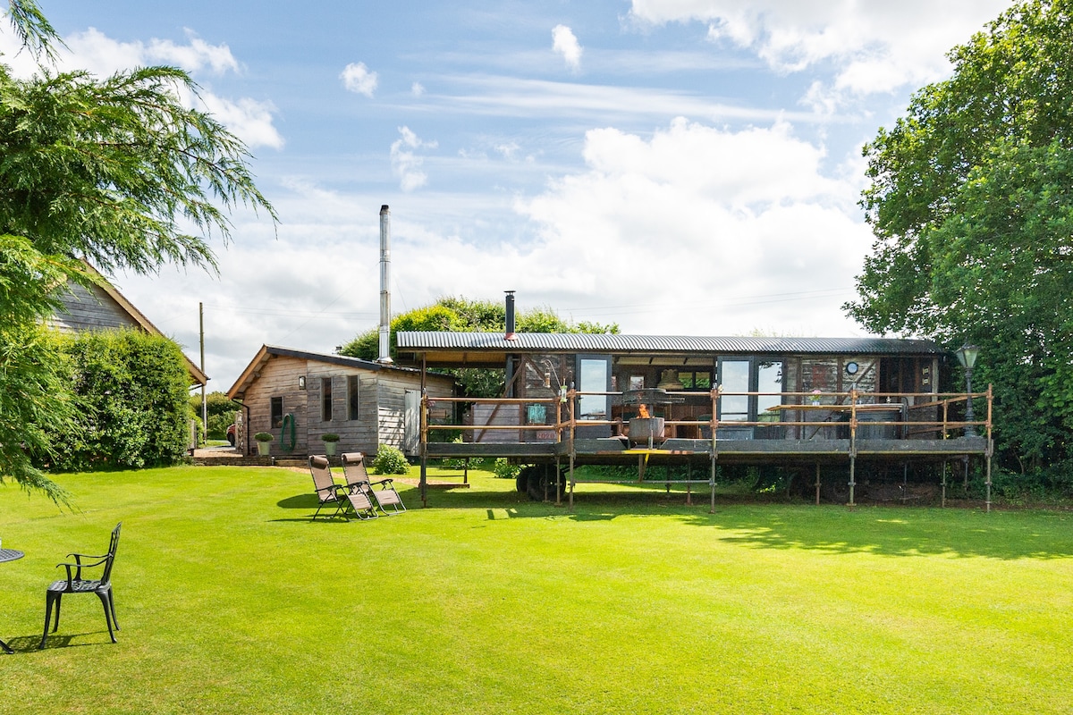Private, Cosy, Art Deco inspired Railway Wagon. 1 of 2 wagons, set in the grounds of our working family home in the Corvedale. An area of outstanding natural beauty in South Shropshire countryside. Spectacular views with Red Kites often seen circling overhead & pheasants strutting around the garden. Self contained wagon, suited to couples, walkers, cyclists, bikers, star gazers & anyone wanting a charming glamping experience. Check out our other GWR Wagon too, Victoria if dates are occupied.