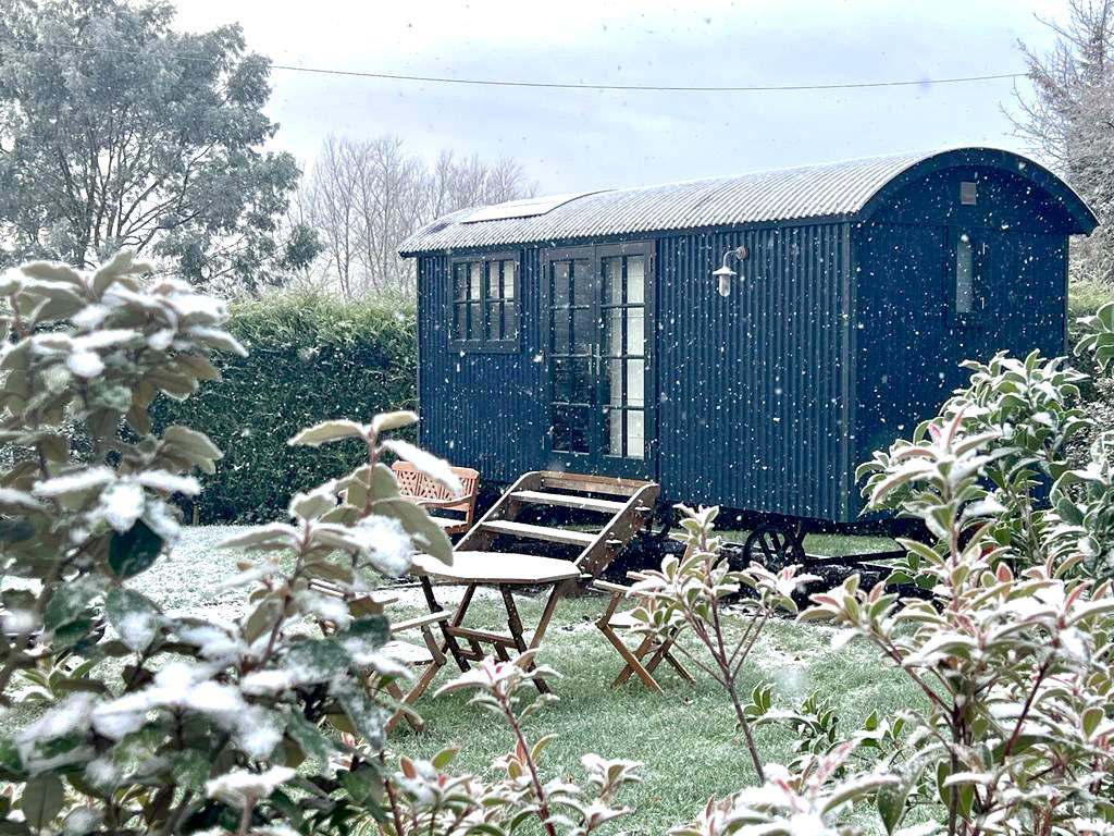Tucked away in the Herefordshire countryside, our hand-crafted shepherd’s hut is a secluded retreat designed for couples seeking peace and privacy. Inside, enjoy a cosy wood burner, double bed, ensuite shower room and a thoughtfully equipped kitchen with breakfast bar. Outside, unwind in your private Scandinavian wood-fired hot tub beneath the stars. A perfect year-round escape to slow down, switch off and explore the Welsh borders.