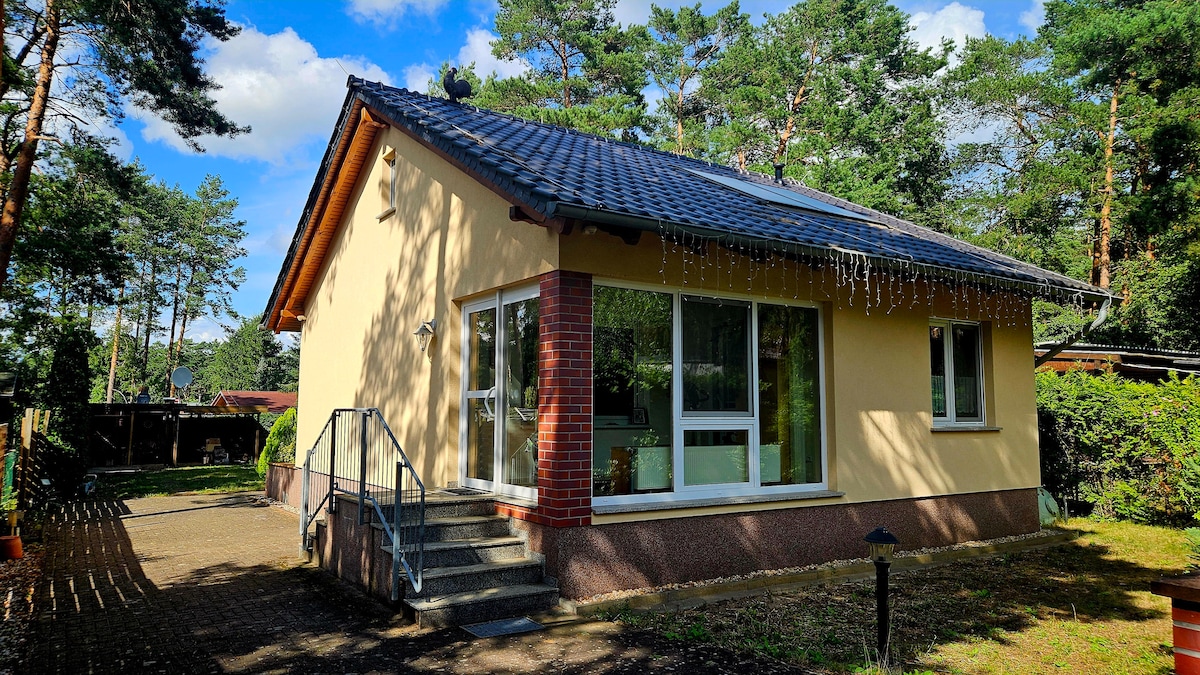 Kick back and relax in this calm, stylish space.The house is newly renovated (May 2023) ! It is located in the heart of a beautiful village, 10 min away from Spreewald and the city of Lubbenau. There is forest, bike paths, lakes - all minutes away. The house has 1 bedroom & living room/ 1 bathroom / fully equipped kitchen. It has a large terrace with a view of the big beautiful garden. Garden and grilling area have shared access. The house operates entirely on renewable energy sources.