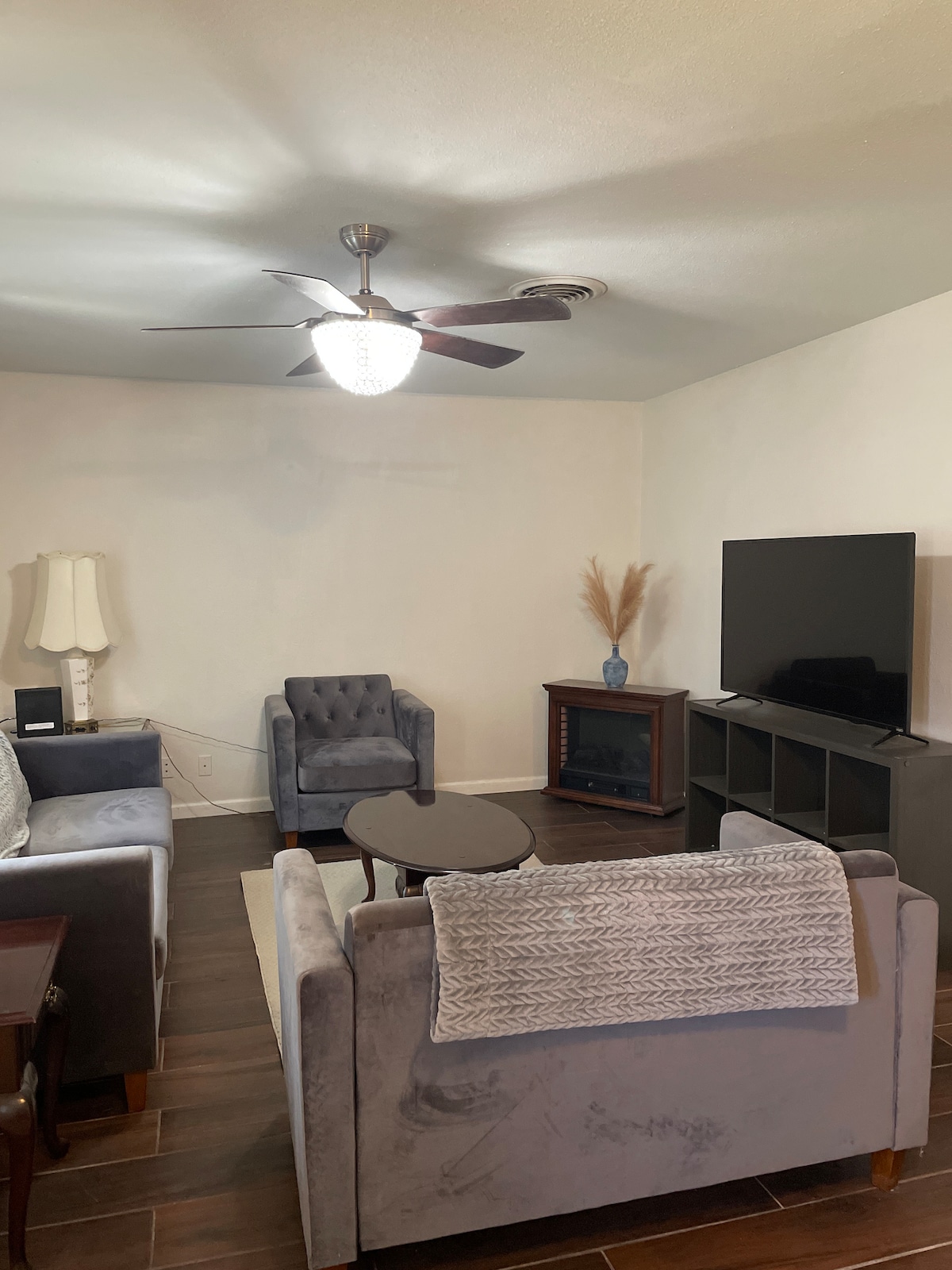 A cozy three bedrooms and two baths house is located in an awesome Burkburnett neighborhood near Sheppard Air Force Base with one king bed, one queen bed, two full size bunk beds, sleeping sofa, and queen size air mattress is available if needed. Every room has a TV.