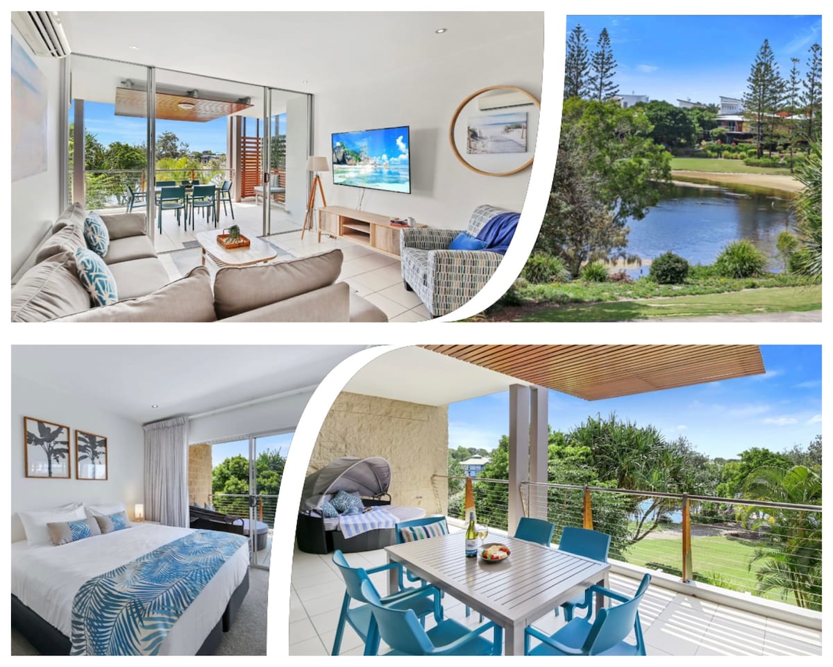 Defined by its blend of muted colours and geometric decor pieces, this subdued apartment has a streamlined style that fosters a climate of calm. A covered deck patio invites the ideal space to host a barbeque, complete with lake views. Direct lagoon water views and ground floor access make this a dream holiday destination. You can't help but relax! Ground floor apartment with your own private garden and deck with direct walking access to the resort restaurants and bar, lagoon, pool, surf beach and river. Access the resort facilities with free water sports (kayaking, water trampoline and sailing boats) and a paid water activity park perfect for the kids (and big kids too!). An 18 hole Golf course runs through the resort. This is a perfect Sunshine Coast getaway for the whole family. All linen and towels are provided. Sit on the deck and watch the world go by. The Sunshine Coast airport is a few minutes drive, Sunshine Plaza is a 15 minute drive, there are however local shops for provisions. Any questions before or while you are staying, please text, call or you can message via AirBnB. Contact details are all provided in the information pack on arrival. Set within Twin Waters Resort, the apartment is set beside the Maroochy River. It's steps away from a golf course and a beach, as well as a conservation area. Restaurants and nightlife in town are a short drive away. Full access to resort facilities may be subject to COVID restrictions. Great ideas for things to do in the area: Eumundi Markets Marcoola Eat Street Friday nights Noosa is half hour drive away Restaurants recommended outside of the resort: High Tide Cafe The Loose Goose Bulli Cafe at Marcoola Set within Twin Waters Resort, the apartment is set beside the Maroochy River. It's steps away from a golf course and a beach, as well as a conservation area. Restaurants and nightlife in town are a short drive away. Full access to resort facilities.