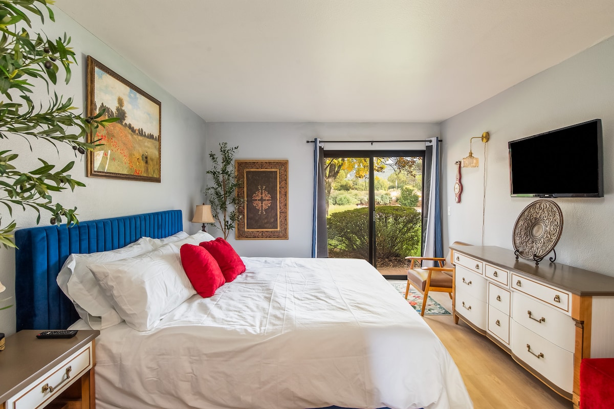 Stay steps from Sedona’s best shops, restaurants, and Jeep tours at the Sage Apartment with hot tub. In the heart of Uptown, you’ll be minutes from iconic trails and vibrant nightlife. This freshly remodeled retreat features Ralph Lauren 100% cotton bedding, plush towels, and cozy robes for the hot tub. With a full kitchen and free parking, you’ll have everything you need for a stylish, comfortable, and unforgettable Sedona getaway.