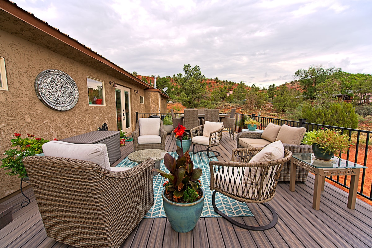 Experience an unforgettable blend of comfort and elegance in the heart of Sedona. Our home, nestled into the hillside, presents unparalleled panoramic views of the iconic red rocks, offering a stunning backdrop throughout your stay. Situated less than a mile from the charming shopping of Tlaquepaque, you'll have easy access to explore. After immersing yourself in the natural wonders of Sedona, rejuvenate in our hot tub, allowing the surrounding beauty to wash away your cares. TPT21331507-SP3256
