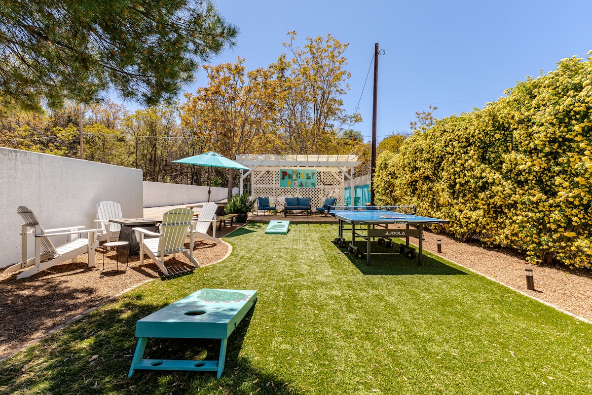 Have fun with the whole family at this stylish new build home within walking distance of Old Town Cottonwood. Modern 3 bedroom, 2 bath home with office. Perfect for family getaways, couples' getaways, or girl weekends in wine country! This home is decked out with amenities including full kitchen, fully automatic adjustable standing/sitting work desk, ping pong table, air hockey table, dart board, and a fire table to enjoy a glass of wine in the evening on the back patio! Come Kick It on Kindra!