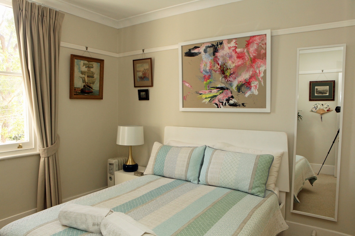 Clean, bright, contemporary, and decorated with a striking collection of modern indigenous artwork, this cosy little apartment offers guests a sheltered and sophisticated home minutes from all the entertainment Sydney has to offer. Situated in one of the most cosmopolitan neighbourhoods, it is a vibrant inner-urban community with grand old Art Deco buildings & harbour parks. It's walking distance to the city through Botanic Gardens. Our home is well designed, comfortable, clean & fully equiped.