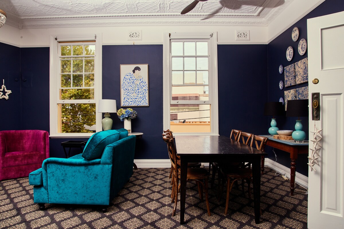 Under 5 minutes walk to trains, trams, bus, gym, swimming pool, parkland, cafes, bars, supermarket, church, leading theatre, MCM furniture, and eclectic retailers. Amidst all this is our apartment which is the upper half of a traditional 1880’s terrace house. The apartment has its own private entrance, a covered balcony, and a courtyard. It is furnished with vintage pieces to create a stylish and relaxed interior. Parking is available for a small car, at $40 per day. DM me to discuss.