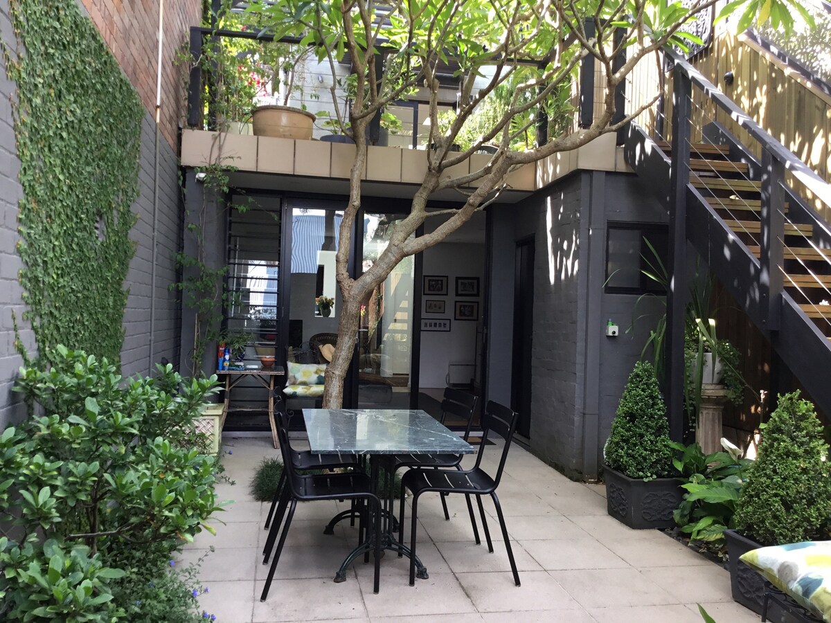 Eclectic inner city terrace house - full of light due to an internal atrium. Close to Redfern train station, Sydney's trendiest small bars, city lifestyle and bustling arts and culture scene. Amazing cafes and some of Sydney's best coffee right on your doorstep. A great place for a group of friends, a family or a couple to explore the best of Sydney and the bustling inner west. Make yourself at home and feel a part of this City of Villages. Home uses its own solar power!