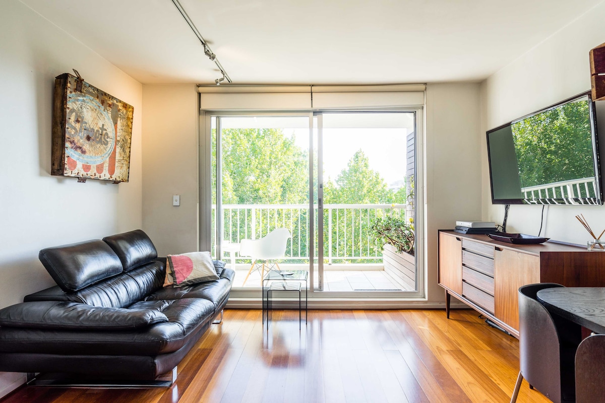 Our city apartment is a bright, comfortable self-contained 1 bedroom with 24hr front-desk access. It is conveniently located directly across from Hyde Park and within walking distance of delightful cafes, restaurants, parks, major city attractions and public transport, including Museum Station which has a direct connection to Sydney Airport.