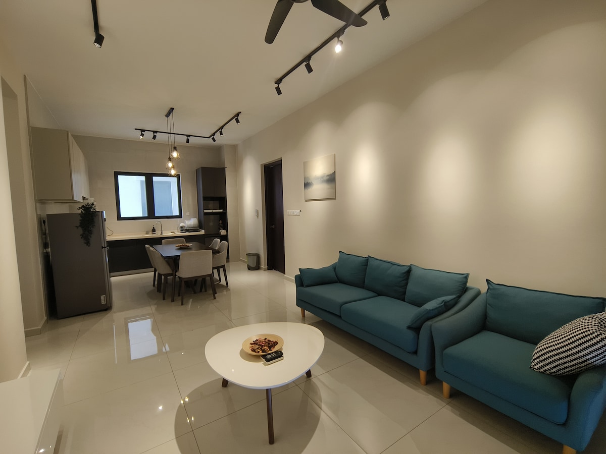 (1+1 BR & 1 bathroom) Contemporary modern and cozy condo in the heart of JB city centre. Suitable for 4pax family, friends and business group. **5mins to CIQ, City Square, KSL, Pelangi, and Larkin **8mins to Mid Valley Southkey, Larkin Sentral and Sentosa **15 mins drive to Paradigm mall, Sutera, Skudai and Mount Austin ✔ 4K SmartTV ✔ High Speed Wi-Fi, working tables with extension plug ✔ Washer ✔ Airconds in every rooms. ✔ Atari console, Mahjong, and Board games. ✔ FREE parking for 1 car