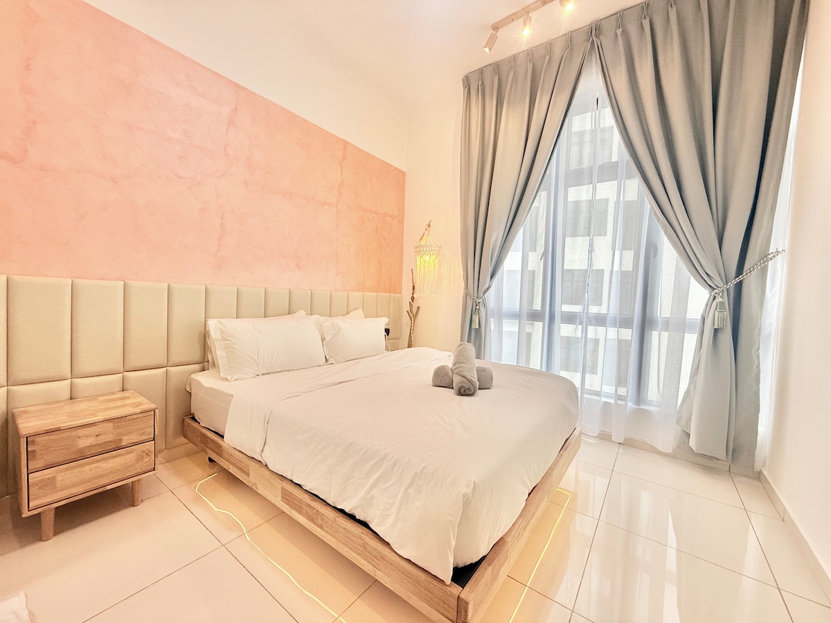 Welcome to our cozy and muji style 1+1Bedroom 4pax homestay !! Our homestay located in the heart of Bukit Indah. Whether you're here for business or leisure, our space is designed to provide you with comfort and convenience. ❤️ Our unit is conveniently located near Aeon Bukit Indah, Legoland or JB town. There's plenty of restaurants, cafes and massage center, cinema, entertainment and etc in the neighborhood. Walking distance also can go aeon bukit indah and lotus supermarket 🚶🏻🛍️