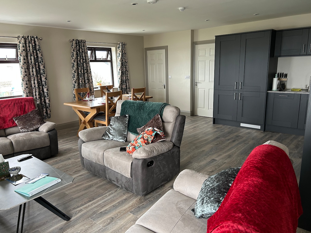 A modern newly decorated apartment with one bedroom, living room, kitchen and bathroom. Spectacular sea views from the sitting room and wrap around views from the bedroom.Awake to the sounds of the breaking waves outside your window. This stylish apartment is situated on the Wild Atlantic Way, the perfect base for visiting The Cliffs of Moher and The Burren National Park. Featuring uninterrupted views of the Atlantic ocean , this sea-front space is perfect for a relaxing getaway!High speed wifi!