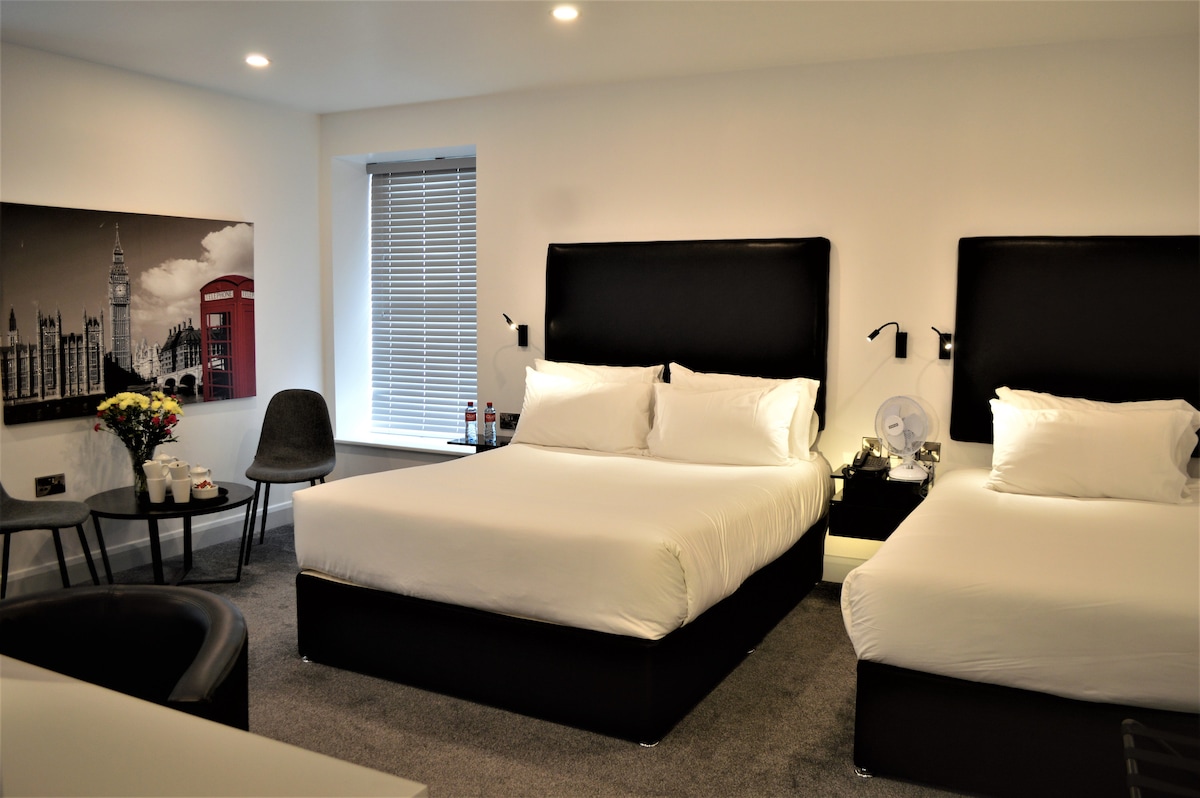 Our Family Rooms at the Bella Vista Hotel are complete with 1 Large King Bed, 1 Large Double Bed, 1 En-Suite Bathroom and stunning views of Cobh and Cork Harbour. These rooms offer an exceptional combination of comfort and style and feature all of the modern amenities you would expect to fulfill your family's stay. Our Family Rooms are suitable for 2 Adults and 2 Children (up to 12 Years Old).
