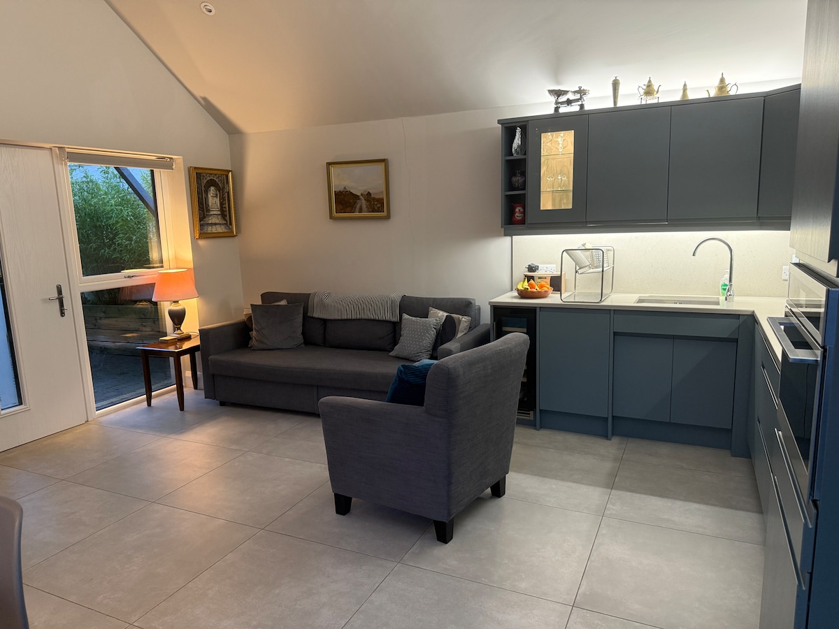 Bright, modern, wheelchair-accessible annex in Bangor West, County Down—ideal for coastal breaks, commuting, or working stays. Open-plan and spacious, with a double bedroom, flexible sofa-bed sleeping, underfloor heating, walk-in shower, utility room, high-speed internet, TVs, and a well-equipped kitchenette. Private patio and shared garden. Minutes from the coastal path, marina, family attractions, and a 10-minute walk to Bangor West station with easy links to Belfast.